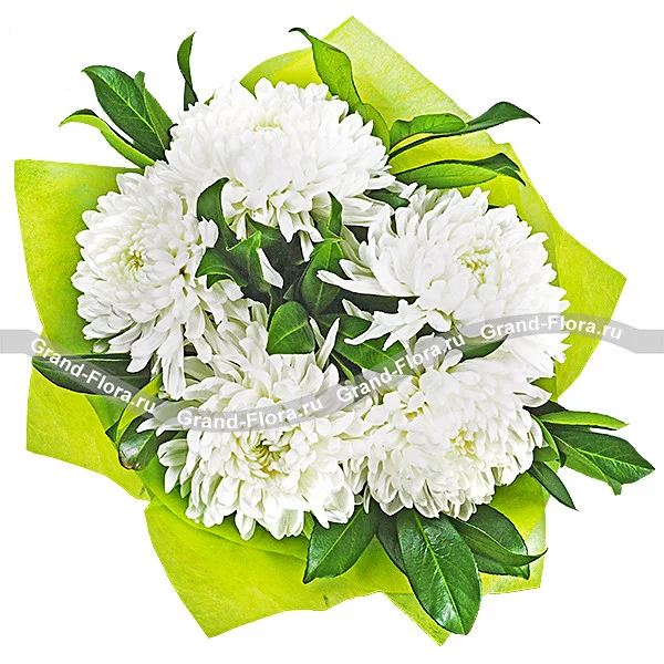 Элегантный букет из белых хризантем - это классическое цветочное произведение, которое никогда не потеряет своей актуальности и всегда будет радовать изысканной и такой нежной красотой.